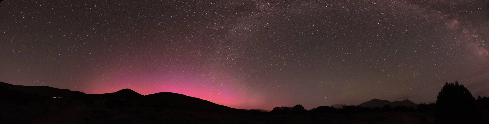A fast halo CME*** struck Earth's magnetic field on June 1st at 11:42 PM MT (0542 UTC). I missed the first big outburst at 1:40 am but caught a lovely display just before twilight from 3:45 - 4:15 am. It was visible unaided and looked like faint bristles of pale light dancing along the horizon.