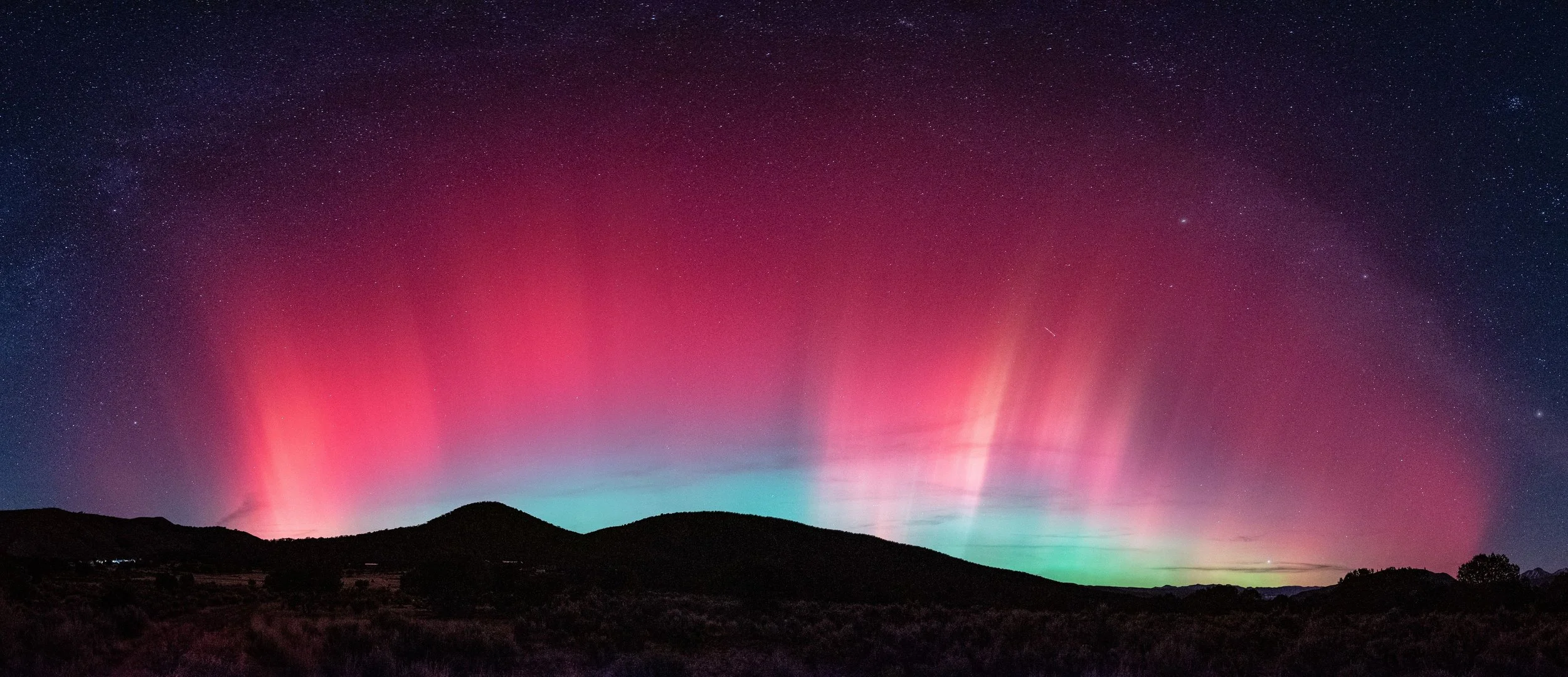 One defining feature of this aurora storm is that most photographers in Colorado picked up a strong red hue, stronger red in these auroras than in the past geomagnetic storms (which tend to be more pink). However, to my naked eye, the auroras were indeed a delicate and beautiful pink color. I was even a little frustrated that the camera was showing such a strong red color since the pink had touched my heart so.
